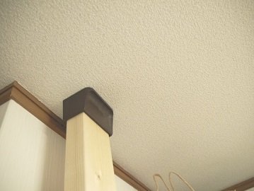 2コで1セットになっていて、部品の中にはスプリングが入っています。板材の両端にディアウォールをはめこと、板材が突っ張り棒のような状態になり、柱に変身できる優れものアイテムなのです!これに床から天井までの高さと同じ長さの板材をはめ込んで、玄関の壁にセット。写真のように平行になるように設置します。
