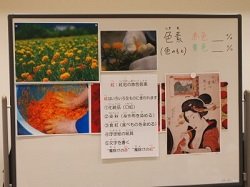 写真はワークショップの掲示物。今回、参加したのは、紅について総合的に学べるワークショップ。子供の自由研究のヒントになるようにと、夏休み期間に親子向けワークショップとして開催したそうです。今年は8月上旬と中旬の2回開催され、筆者親子は8月中旬の午後のコースを受講してきました。当日の参加者は私たち親子含め5組の参加でしたが、男子は息子だけ、後は全て女子でした…予想はしていましたが…。(それでも息子は可愛い女の子が数人いる中でニコニコ鼻を伸ばしてご機嫌でしたのでまあ良いかと)。