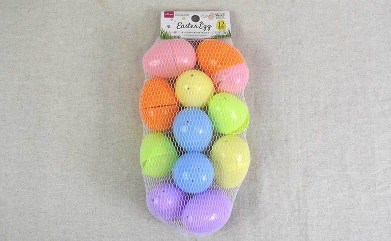 12個のタマゴがセットになっていて、それぞれオレンジやピンクなどでカラーリングされています。タマゴの真ん中をパカっと割ると、その中に小物を入れることが可能。