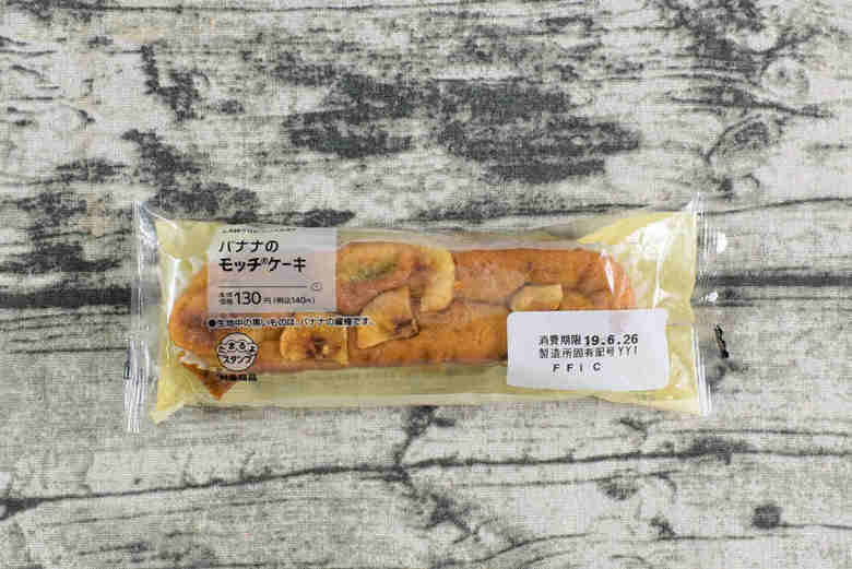 ローソンのコンビニスイーツには、果物の味を生かした人気商品も続々と登場しています。お次にご紹介するのは、ローソン「バナナのモッチケーキ」(税込140円)。ペースト状にした生バナナを、生地に混ぜ合わせた一品です。