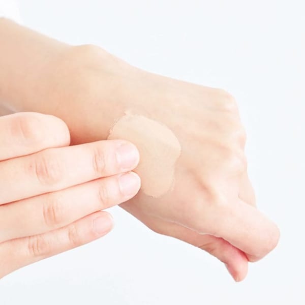 ファンデを塗り終わったら、手の甲に1円玉大のファンデを出し、1〜2秒指でクルクルと練ります。これをシミの部分に目立たなくなるまで塗り重ねましょう。完全に隠れていなくてもOK。あえてコンシーラーは使わないのがポイントです!