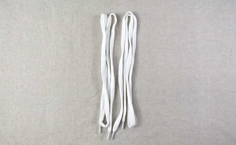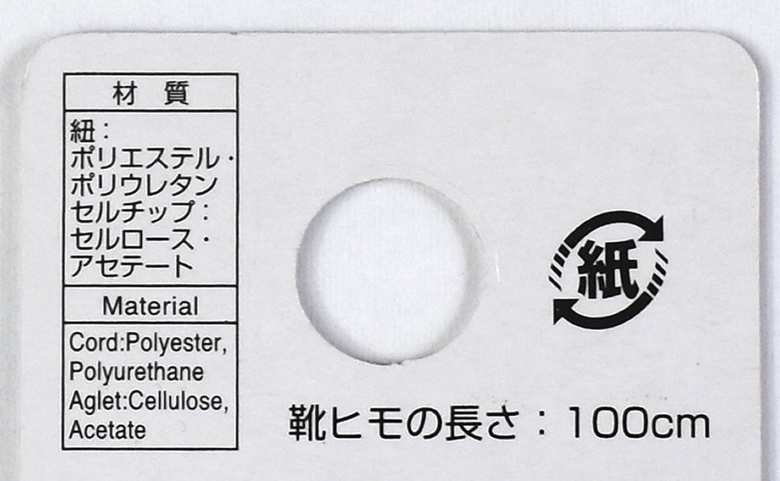 同商品は一見すると普通の白い靴ひもです。材質にはポリエステルやポリウレタンなどが使われており、長さは約100cm。左右の靴に通せるよう、しっかり2本用意されているのでご安心を。
