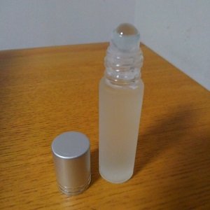 これはロールオンタイプの容器でバックやポケットに入るコンパクトサイズ。持ち運びに便利でさっと気になるときに首筋、手首にのせ香りを楽しんでいます。ベースのオイルはホホバオイル、その中に精油をブレンドしています。ホホバオイルはどんな肌質でも使用でき、アロマを入れて毎日使用しています。化粧水や乳液などでもいえますが、開封すると早めに使い切ったほうがよく、この手づくり香水も講師の方から2か月ぐらいで使用したほうがいいでしょうと言われました。