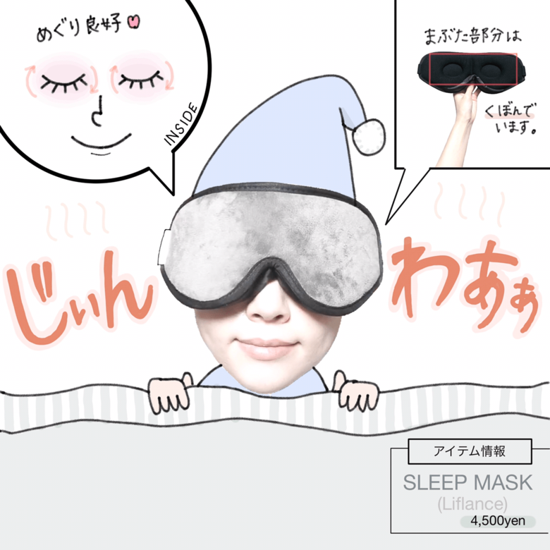 ってことで、私がたどり着いたのは!遠赤外線効果で目元を温めてめぐりを良くし、【むくみClear!】【疲労ByeBye!】へと導くリフランスのアイマスク、「スリープマスク」(4,500円)也。