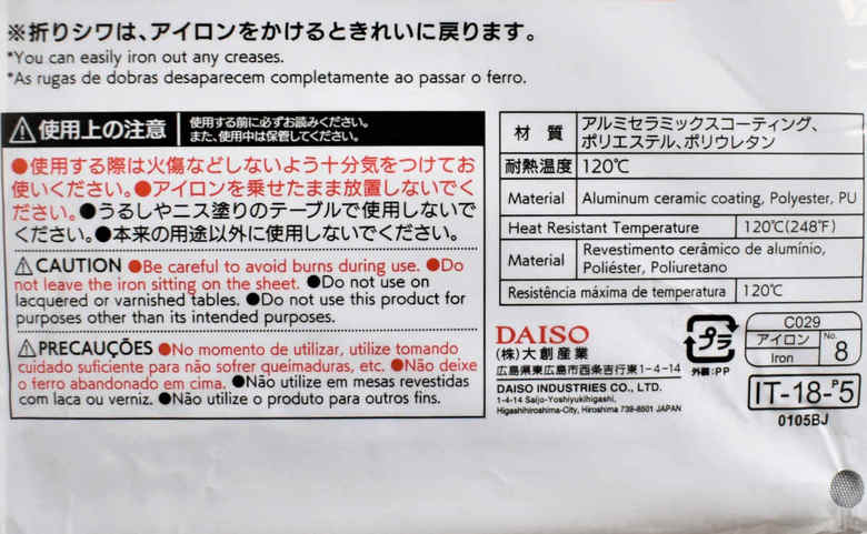 しかしスリム過ぎる見た目だと、アイロンの熱に耐えられるか心配に…。実はマットにアイロンの“反射熱”を弾く“アルミコーティング加工”が施されています。さらに耐熱温度の上限は120度なので、安心してアイロンがけをおこなえるはず。