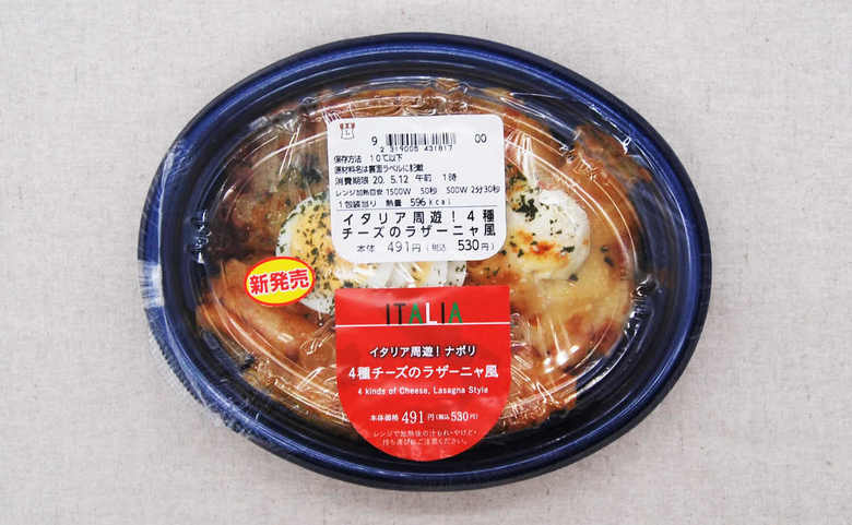 平たいパスタをミルフィーユのように重ねて焼いたラザーニャは、もちもちの食感が魅力のイタリア料理。家で作るのはちょっと面倒ですが、ローソンの「イタリア周遊! ナポリ 4種チーズのラザーニャ風」(税込530円)なら気軽に本格的な味わいが楽しめます。