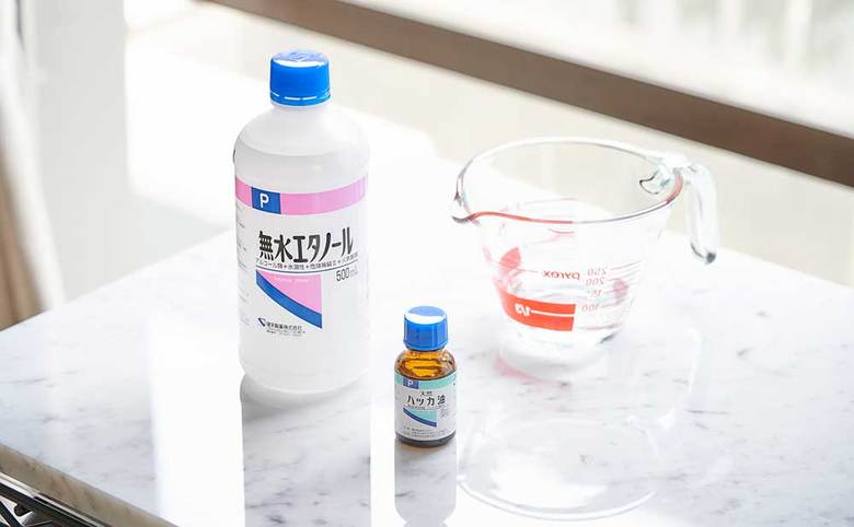 - ハッカ油を5~10滴ほど垂らして、よく混ぜればできあがり