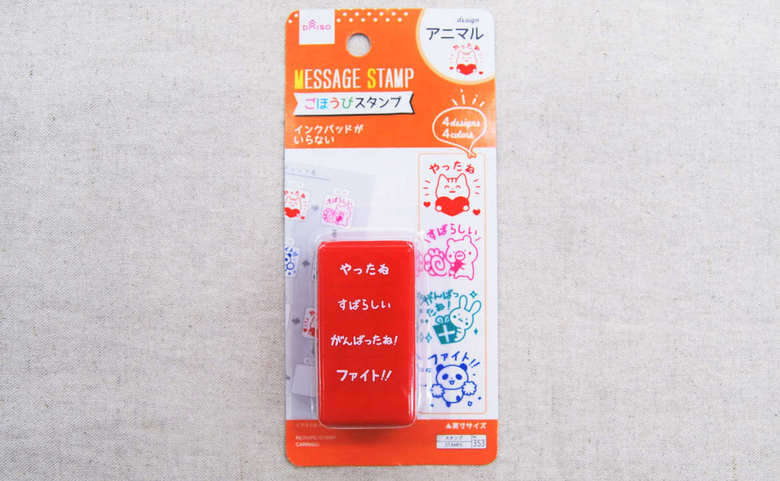 褒められるのは誰でも嬉しいもの。特に子どもの場合は褒められて成長するケースが多いので、意識的に“褒め”を実践する親も少なくありません。そこで今回は、“褒める”に特化したダイソーグッズ「ごほうびスタンプ」をご紹介しましょう。 同商品は重箱のように4種類の判が重なり合ったスタンプ。それぞれのスタンプには、“やったね・すばらしい・がんばったね!・ファイト!!”との文字が刻まれています。テキスト以外にもウサギやパンダ、ネコといった可愛い動物のイラストが。個人的には上手くいかなかった時のスタンプが「もうすこしがんばりましょう」ではなく、前向きな気持ちになれる「ファイト」というフレーズなのが気に入りました。