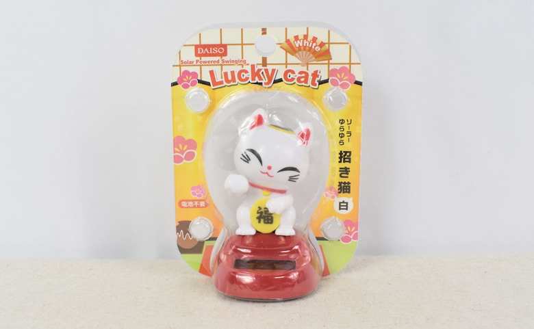 古くから縁起物として知られている“招き猫”。置いてあるだけでも運気がアップする予感がしますよね。今回ダイソーで購入してきたのは、「ソーラーゆらゆら招き猫(白)」というおもちゃ。コンパクトサイズなので、手軽に可愛い招き猫を設置できますよ。