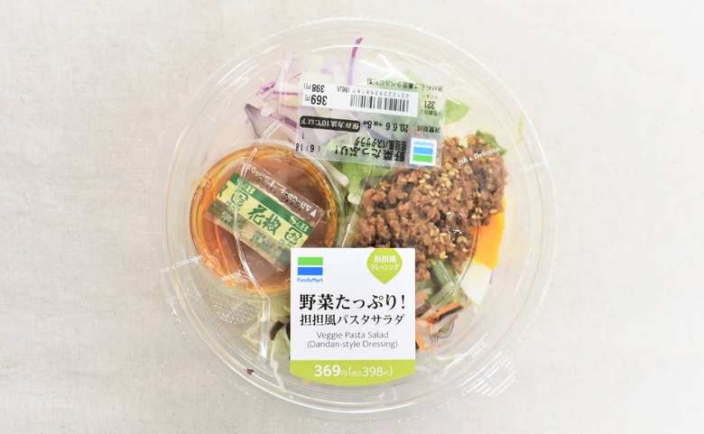 暑い日は冷たいものでも食べて、心と身体をリフレッシュさせたいですよね。そこで今回は、パスタサラダを担担風にアレンジした「野菜たっぷり! 担担風パスタサラダ」(税込398円)をピックアップ! ファミリーマートで発見した夏にぴったりのサラダを、さっそく味わってみたいと思います。