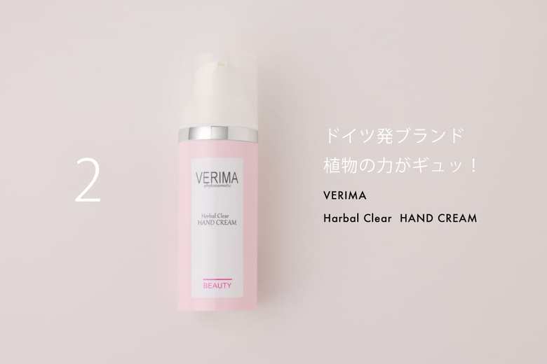 世界最大級のオーガニック見本市・ビオファを開催する、オーガニック大国であるドイツ。その南西部の美容研究家によって誕生したヴェリマのハンドクリームは、アーモンドオイルやホホバオイル、シアバターなど植物オイルやエキスを豊富に配合。こっくりとした濃密なテクスチャーで、肌に薄いヴェールをかけたような肌仕上がりに。ヴェリマ ハーバルクリアハンドクリーム 50ml 2800円(税抜)/ケーツー・インターナショナル