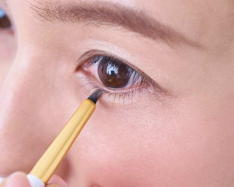 A:一重・奥二重の目は、涼やかで知的な上品さが魅力。ぜひその魅力も楽しんでもらいたいなと思います。でも、パッチリ見せたいこともありますよね。そんなときは、リキッドライナーが効果的です。いつものアイメイクの最後に、上まぶたの黒目の外側あたりからスタートし、目尻から2〜3ミリ出るまで、リキッドライナーを細く引いてみてください。まつ毛を目尻に1本増やすつもりで引くと、ナチュラルなのに目が大きく見えますよ。