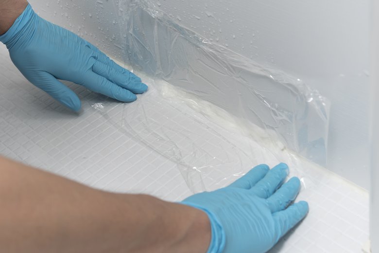 上からラップをぴったりとかぶせて密閉状態に。汚れ度合いに応じて、1時間~1日おく。
