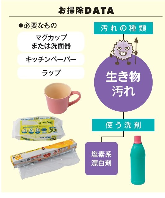 “生き物汚れ”なので、「塩素系漂白剤」を使用します。