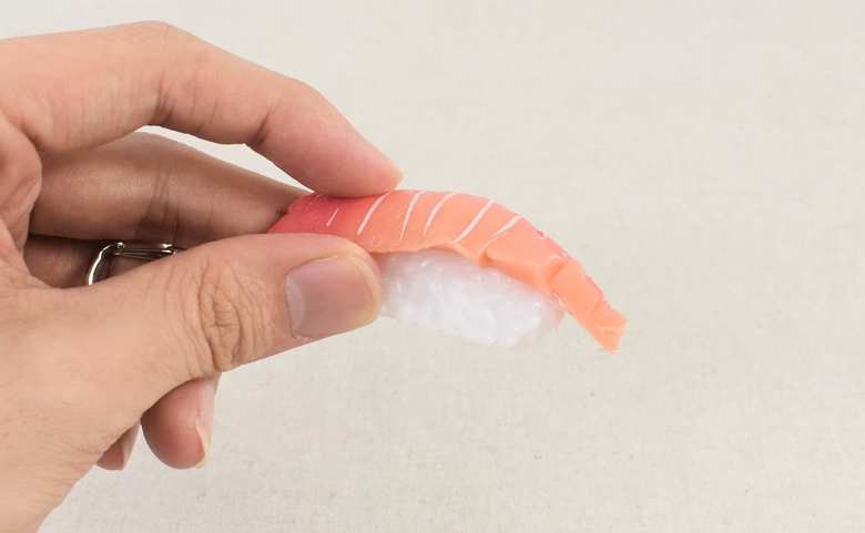 私も鍵につけてみましたが、見た目が強烈なので一気に存在感を発揮。鍵にお寿司という不釣り合いの組み合わせが面白くて、不意に見た時に笑ってしまいそうです。