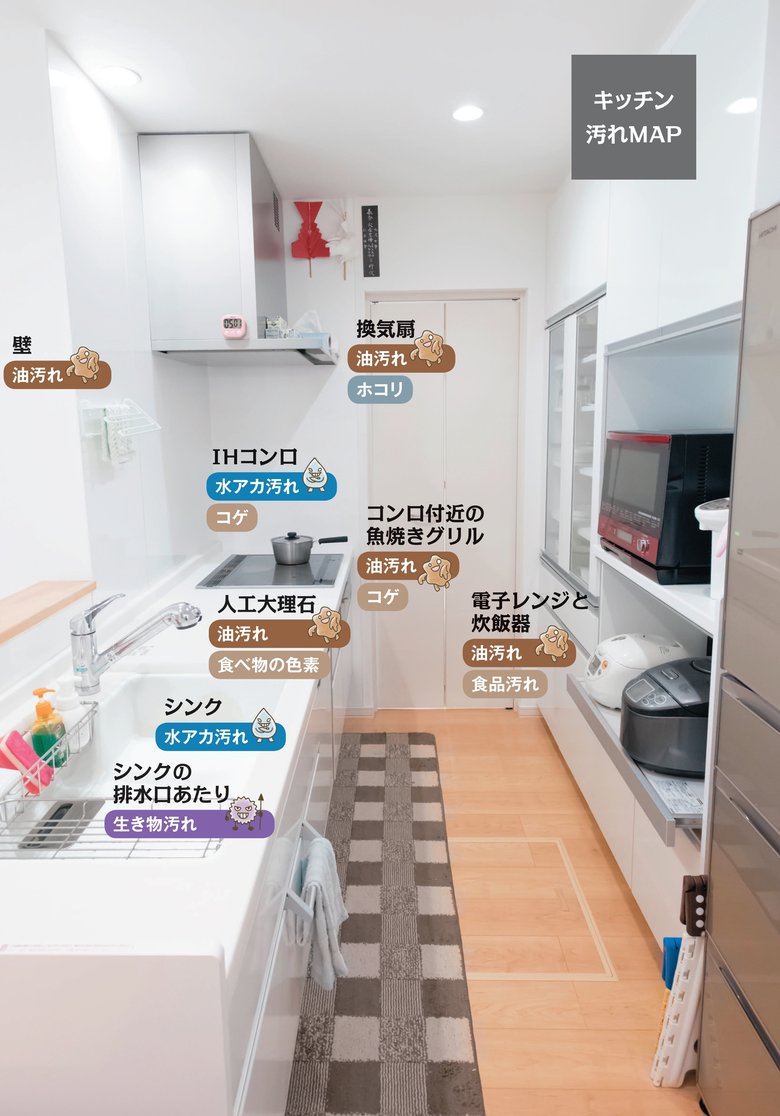 「落ちない汚れをラクに落とす掃除術」。洗剤のすべてを知る茂木さんならではのテクを、余すことなく、紹介しています。