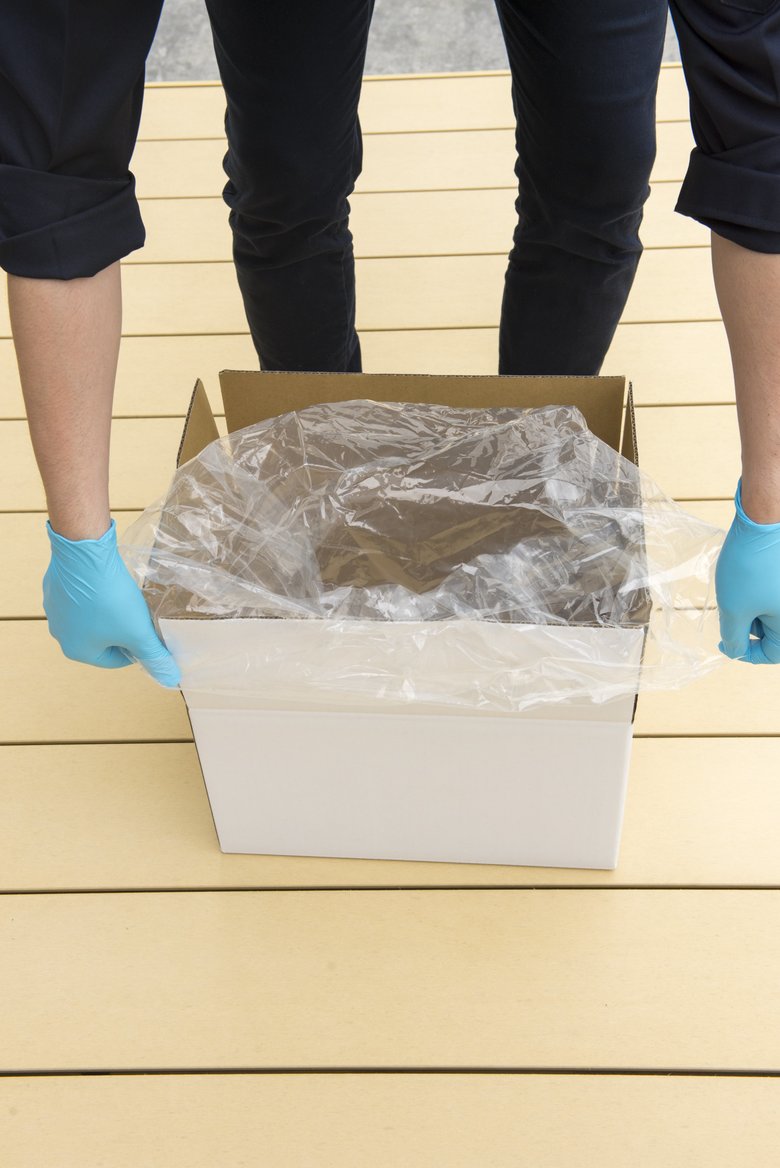 2、段ボール箱の内側にゴミ袋を重ねる