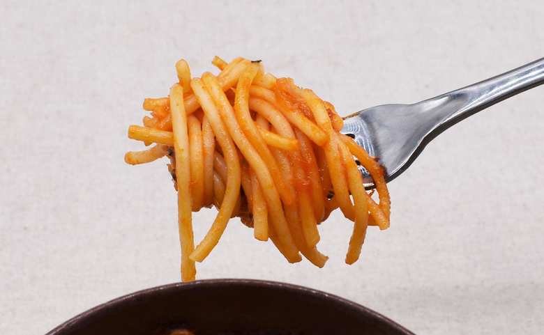 まずはレンジで温めてからフタを開けると、チーズの濃厚な香りが鼻に抜けていきました。使われているチーズは、もちもち食感を楽しめるモッツァレラチーズです。細長いスパゲッティと熱々のモッツァレラをよく絡ませて実食スタート。