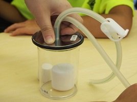 (左より『ビニール袋の熱気球』、『真空管の中で膨らむマシュマロ』『空気で飛ばすスポイトロケット』)