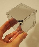 科学実験・工作教室は、大学や高等専門学校(略称:高専)でも年に数回程、子供向けの科学実験・工作イベントが開催されている事が多いです。傾向として、小中学校の長期休暇に合わせて企画する、または学園祭等の催しの一部として開催する学校が多いように思います。(中には地域の小中学校の要望に合わせて科学実験教室を開催する大学や高専もあるそうです。)私は最近ですと、居住市内にある東京工業高等専門学校(略称:東京高専)の「サイエンスフェスタ」というイベントに息子と参加してきましたが、子供が夢中になるワークショップや実験・工作等が色々企画されていて驚きました。写真はその時ワークショップで作成した珍しい立方形スタイルの万華鏡です。これが見る角度によって不思議な映像が見られる何とも不思議で面白い万華鏡なのです。ワークショップを主催された東京高専の先生のお話によると、2枚の合わせ鏡ともう1枚の鏡を用いた反射の性質を利用した現象で、このような不思議な映像が見られるとの事でした。作成方法ですが、鏡面ボードを6枚用意して、表面に電動工具で絵や模様を入れます。そして絵や模様に色を付けてから6枚の鏡面ボードが立方体になるようにセロテープで貼り合わせて出来上がりです。鏡面ボードの3枚は、覗き窓用に三角にカットされているので、このカットされた覗き窓から中の映像を見るのです。通常万華鏡は筒の中に3枚の鏡面を三角柱状に貼り合わせたものを利用することが多いので、このタイプの万華鏡を見慣れた方には、立方体型万華鏡の独特な不思議映像にはきっと驚かれると思います。