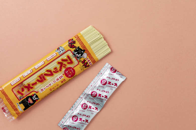 こちらも熊本の2大棒状ラーメンの一つ、「アベックラーメン」。1960年発売以来、地元の人々に愛されている熊本県民の「ソウルフード」的な存在です。そして注目すべきは、このキャッチーなネーミング。2人前であることから、発売当時の流行語「アベック」を商品名にしたことに由来しています。スープは香辛料を効かせたあっさり塩味で、どこか懐かしい味わいです。