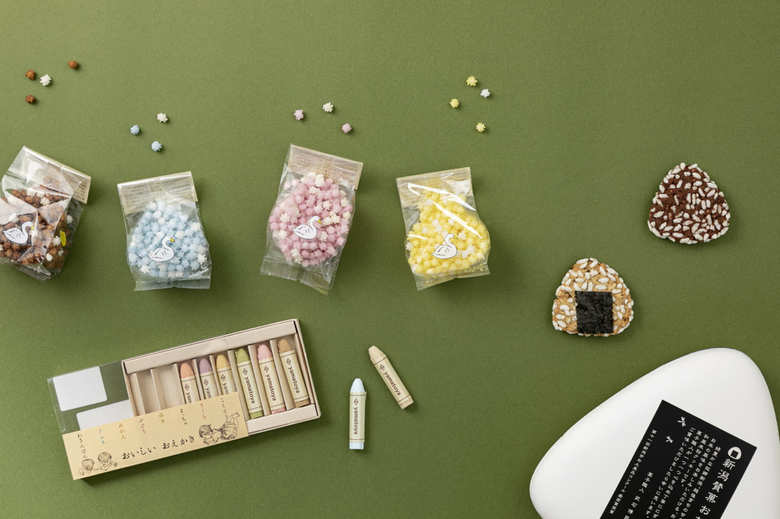 1778年創業。お茶の席などにも用いられるお干菓子をメインに製造販売している越乃雪本舗大和屋の人気お菓子「おいしいおえかき」。見た目はクレヨンそのものですが、和三盆糖を用いたお干菓子です。日本の伝統色をモチーフとし、わさんぼん(プレーン)、ラムネ、みかん、ぶどう、ゆず、まっちゃ、さくら、こくとうの8種類の味が楽しめます。こちらは春夏仕様ですが、季節によって秋冬仕様に変わります。