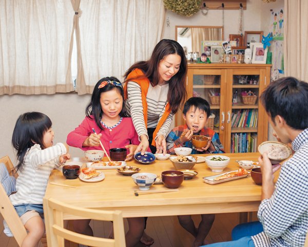 帰宅後は、朝準備しておいた“仕上げるだけ夕食”のおかげで、家族を待たせることなく食事の準備が完了! 食後には子どもたちとの時間もたっぷりとれます。しかも、家族みんなが早寝早起き生活を実践できて、健康そのもの! 「会社で仕事に専念できるのも、家でメリハリのある生活ができているおかげ。朝時間を充実させて、元気で濃い(笑)、ワーママライフを送れています!」