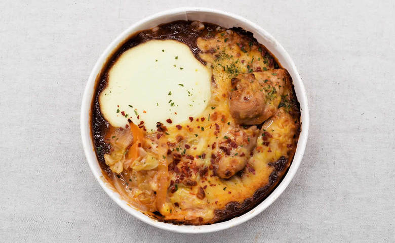 とろけたナチュラルチーズは、辛口の味つけにまろやかさをプラス。玉ねぎやニンジンなどとともに食べることで、甘みが増して食べやすくなりますよ。