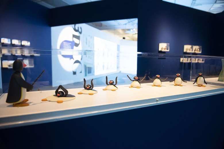 気が遠くなるような細かい作業で、ピングーのアニメは作られています。特に、ピングー顔のフィギュアと仲間たちの表情を集めた「ピングー百面相」は圧巻です。ピングーの魅力といえば、愛らしい表情と、伸縮自在で愉快な動き。ピングーの世界観をより豊かにしている理由を「時間オブジェ」のピングーの形で確認しましょう。グーンと伸びたピングー、平たく潰れたピングー、自由に表現される体の動き、見応えあり!です。