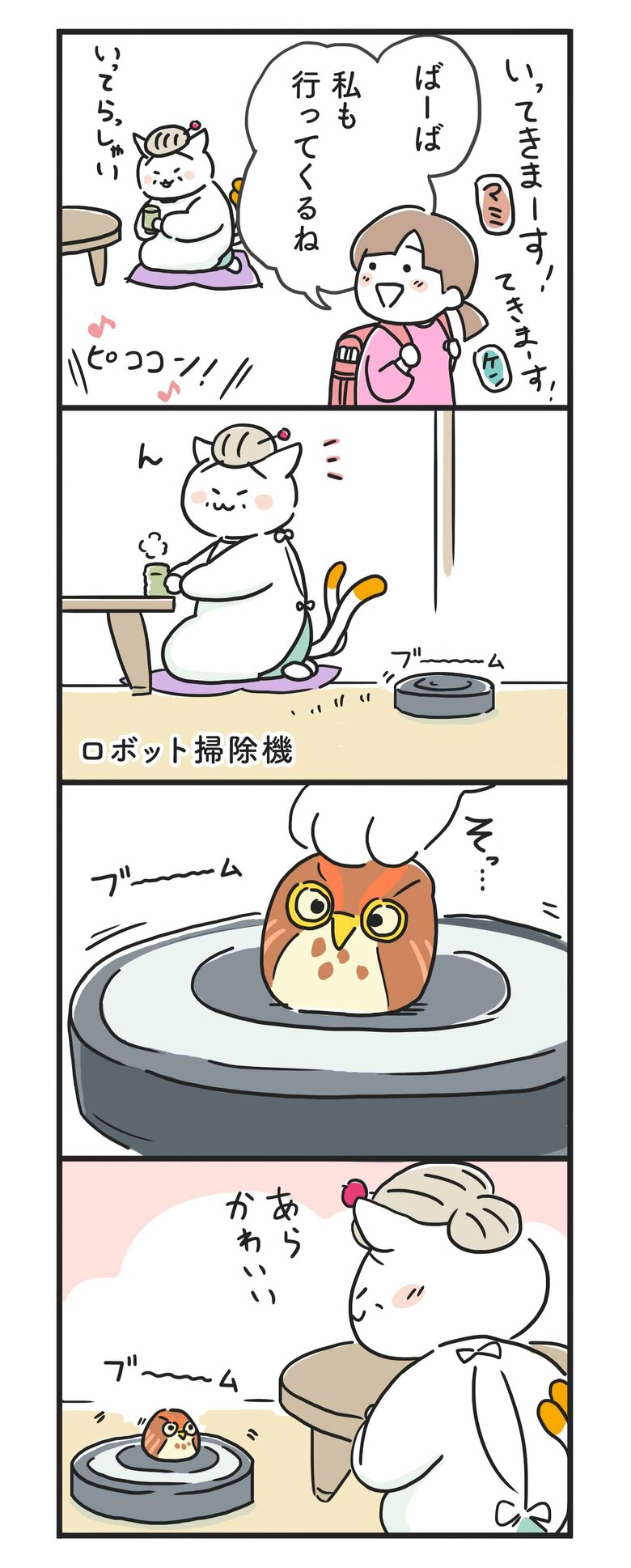 そんなマミとその家族の、賑やかな日常の一コマをのぞいてみましょう。忙しい毎日、うまくいかないことがあっても、マミとウメコのやりとりにホッとできたり、元気をもらえたりするはずです。