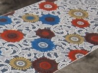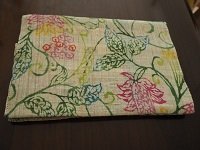 ※左:麻地に型染めをしたブックカバー / 右:ピンク地の布に型染めした大版風呂敷ちなみに、一般の染色体験の他に、年に数回通いで染色を勉強するコースもありますので、より本格的に染色を学びたい方はこちらの通いのコースでレベルの高い染色技術の学習・実習も出来ます。 また、職人さんの手法や染色道具の見学も間近で出来ますので、江戸の染色レベルの高さ及び職人さん達の技術の素晴らしさに圧倒されつつ、日本の染色文化の素晴らしさを再確認できます。そしてこちらの二葉苑の着物ですが、オリエンタルかつモダンな柄行きのものが多いので、洋服が主流の現代社会にもしっくりなじむ着物を求める方には最適だと思います。元々『更紗』は海外から日本に渡ってきた柄という事もあり、“いかにも日本の古典柄!”という柄に比べて、洋服感覚で身に付けられる気軽さがあります。気軽に“着物デビュー”を考えている方は、江戸更紗柄の着物や帯は個人的にお勧めです。また、着物を着るまでにはいかない方も、工房では更紗を使ったかんざしやポーチ等、小物の作成・販売もしていますので、そういったものをさりげなく取り入れても小粋なお洒落が楽しめます。私は海外の友人へのプレゼントにこちらの小物を贈った事がありますが、結構喜ばれますよ♪