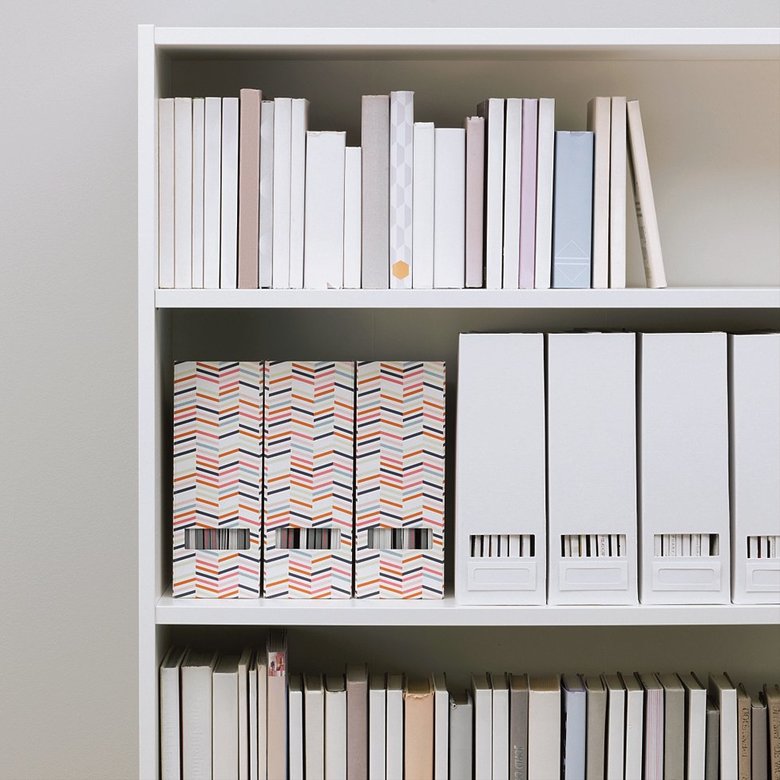 北欧らしいカラフルな柄のマガジンファイル。背を正面に して「隠す収納」をしても、まん中にあいた小窓からしまっ たものが確認できるので、物を探す手間が少ない。再生紙 を使用していて環境にもやさしい。HEJSAN マガジンフ ァイル マルチカラー(幅10×奥行き19×高さ27㎝) 各277円