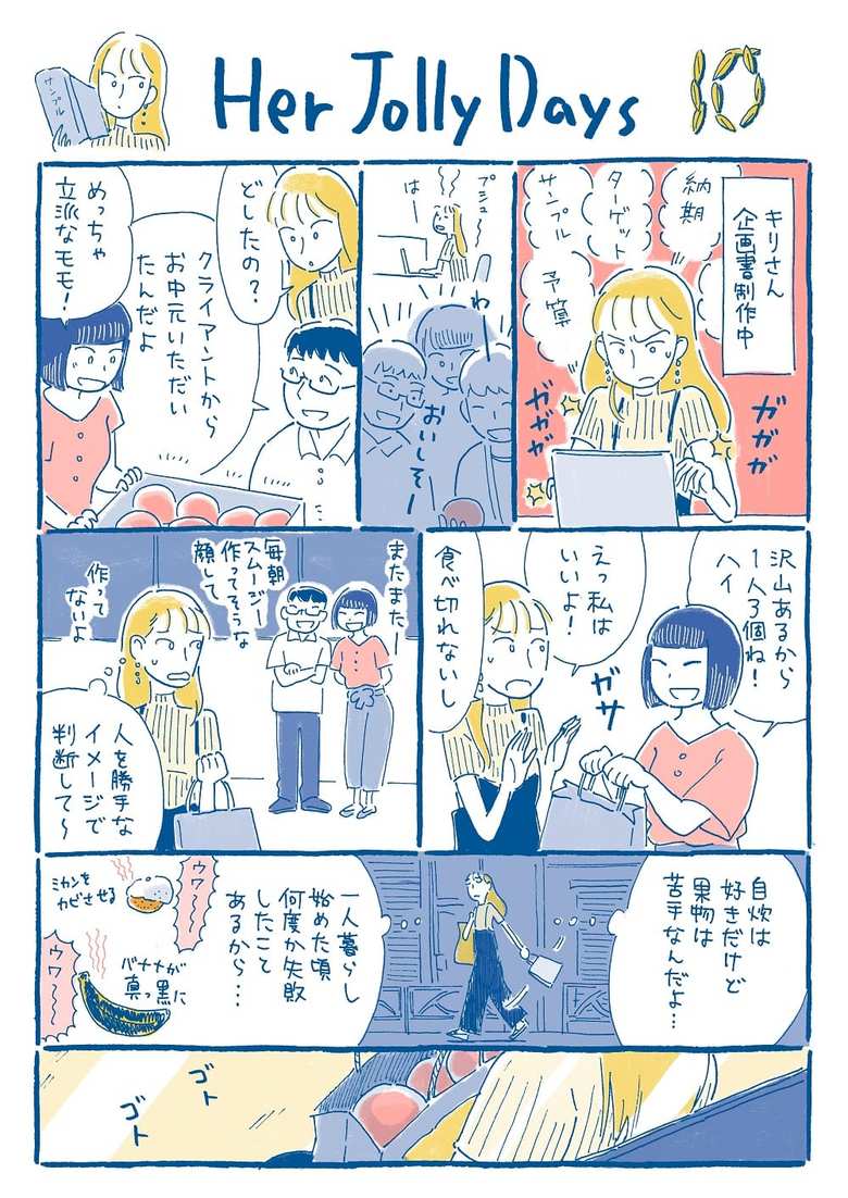 連載トップへ戻る 「帰宅電車で…食べる前からもうごちそう」 石山さやか 4コマ・漫画 2020.08.31 パート社員として働くナズナさんを中心に何気ない日常を紡ぐオムニバスストーリー。 忙しい毎日で見落としてしまいがちな小さな幸せ、自分だけのちょっとしたこだわり… 登場人物たちのそれぞれの視点に想いを馳せれば、きっとゆるく心がほどけてポッと火が灯る。 のんびり、自分らしさを生きていくヒント見つけてみませんか? 漫画を読む 第10話「帰宅電車で…食べる前からもうごちそう」 連載TOPへ戻る 作/石山さやか この記事の写真をすべて見る(2枚)