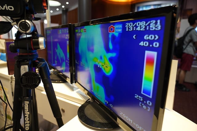 現在、映画館で予約ができる座席は、全体の半分。1席ずつ空けて座るスタイルを取っています。検温には2台のサーモグラフィーを使用し、37.5度以上の方が通過するとアラートでお知らせしてくれます。アラートが出てしまったら、個別に改めて体温測定するという対策を取っています。