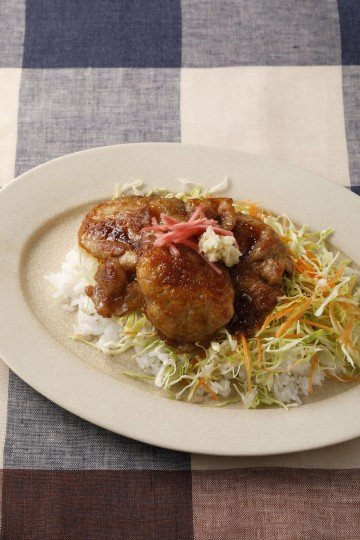 ③器にご飯を盛り、①で混ぜ合わせた生野菜、②、紅しょうがの順にのせ、好みでおろししょうがものせる。