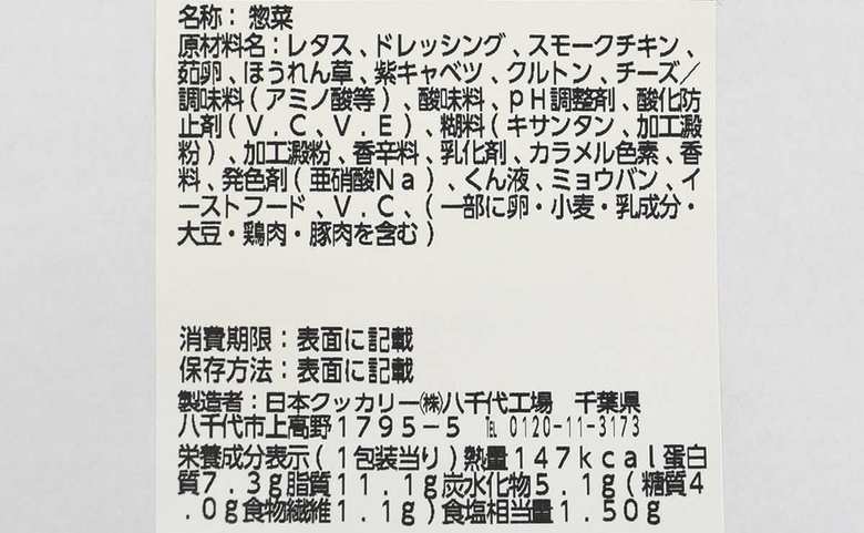 ローソン「スモークチキンとたまごのシーザーサラダ」は147キロカロリー