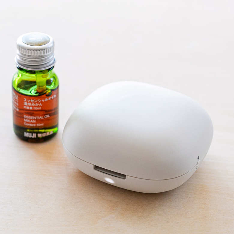 エッセンシャルオイルの香りを効果的に拡散させるのに欠かせないのが、アロマディフューザー。間接照明つきでお部屋の雰囲気を楽しめるもの、加湿器機能付きで香りとうるおいを同時に楽しめるものなど、無印良品には多彩なラインナップがあります。