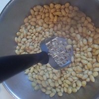 お味噌は仕込んでからすぐに食べることができず、半年寝かします。私が購入したセットには2~3か月程度で食べられますが美味しいのは半年たってからと記載されていましたので夫には半年待ってもらおうと考えています。大豆をつぶすのは夫の役割に、「ストレス解消になる、面白い!!」と絶賛。私は、家でパン作りを時々しますが確かに手作りはストレス発散できますね。味噌づくりもストレス発散になるみたいですね。