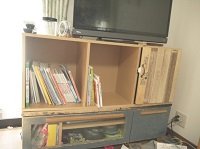我が家のテレビボード、実は以前こちらのWeb記事でリメイクしたことを紹介させて頂きました。市販のテレビボードの上に市販のカラーボックスを横にしたものを固定してテレビボードとして使っています。カラーボックスの部分を子供のおもちゃ収納に使用しようと思い以前の記事ではカラーボックスにフタをつけておもちゃが隠せるように工夫したと紹介させて頂いたのですが…このアイデア、実は完成してから家族からクレームが来てしまいました。フタをつけたのですが、それがけっこう頑丈なフタだったため子供には扱いづらいし、おもちゃを出し入れするたびにフタを開け閉めするという作業も子供にとっては面倒だったり、とあまりメリットがなかったようでした。せっかく紹介させて頂いたリメイクだったので申し訳ないのですが、今回はまたこのテレビボードをさらにリメイクしたことを紹介していきたいと思います。