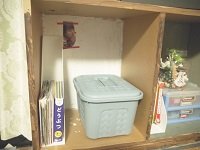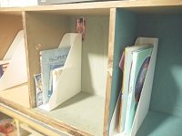 さらにそれぞれ1つずつセリアの書類ケースを設置し、絵本が入れられるようにしました。