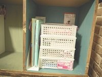 まずは右端ですが、こちらは一番上の娘で現在年長さんになる子の収納です。ダイソーの仕切りケースを4つ購入して収納させることにしました。我が子の場合ですが、折り紙や工作、お友達にお手紙を書いたりもらってきたりと紙類で遊ぶことが多いので仕切りケースの一つ一つに自分で用途を決めさせて収納させるようにしています。