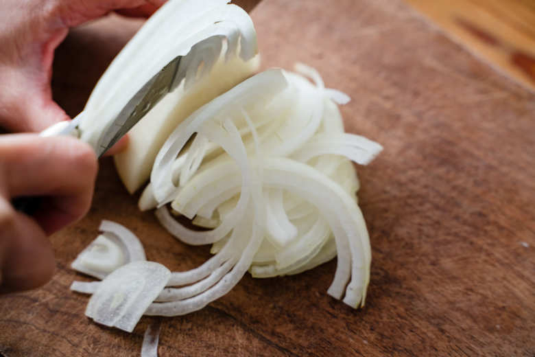 こうすると、炒めた時にツンとした香りが断面から抜けて甘みが際立ちます。