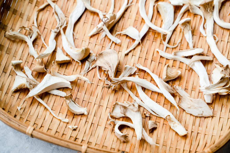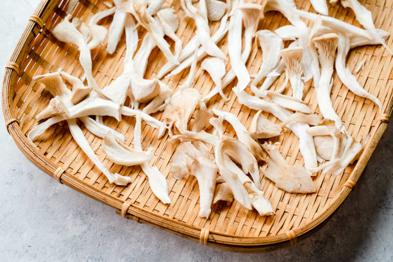 きのこを手で割いて、平ざるにのせ、半日ほど天日で干します。