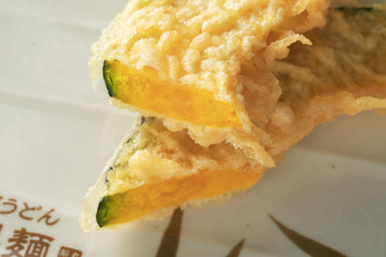 ホクホクとやさしい甘いかぼちゃの天ぷらも人気です。ワンコインと少しという安さにも関わらず、大きくカットされたかぼちゃはトクした気分に!