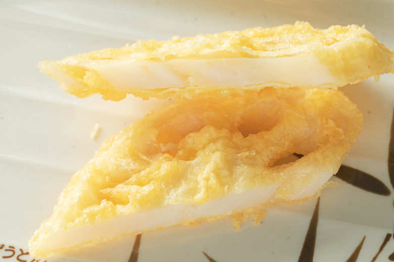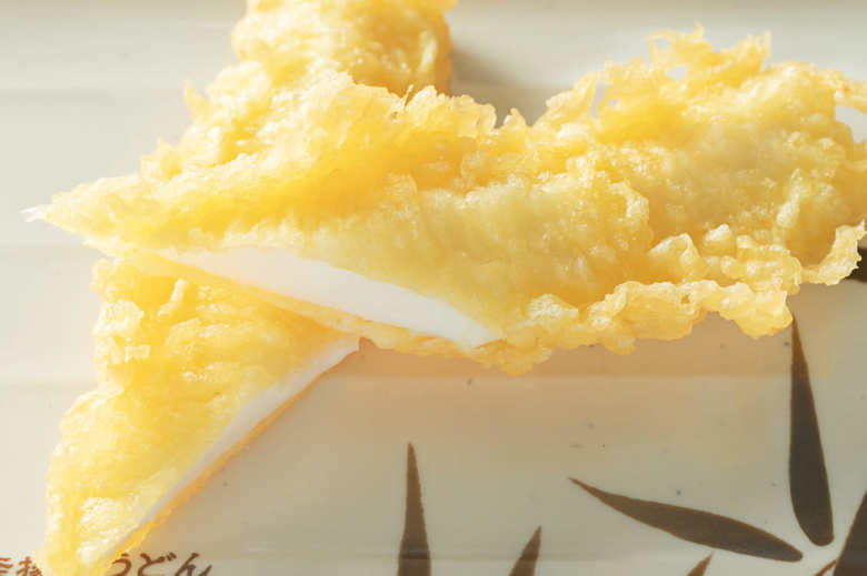 讃岐うどんと合わせる定番の天ぷらともいえる、ちくわ天。天ぷらとして揚げたときに一番おいしくなるように、丸亀製麺用にオリジナルで作られたちくわを使用しているそうです。