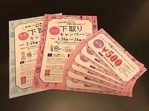 コスメ1点につき、3,000円以上のお買い物で使える500円の割引券と交換してもらえます。