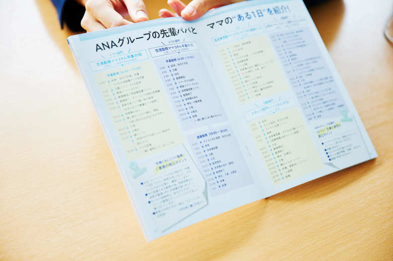 「生の声に勝るものはない」という声はよく聞きますね。育休前の社員に配布する「仕事と育児の両立支援ブック」には、シフト勤務で働く客室乗務員、2児のママなど、様々な社員の1日のスケジュールが載っているので、自分に近いロールモデルの暮らしをイメージしやすいのではないかなと思います。