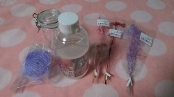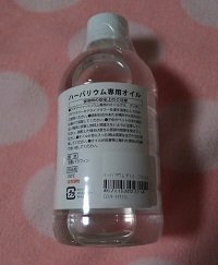 ハーバリウム専用のオイルは大型手芸店で購入、250mlで約1000円でした。ネットでも購入できますが、専用のオイルを使用してくださいね。私が購入したハーバリウム専用オイルは、成分は流動パラフィンで引火点が250℃です。流動パラフィンは別名ミネラルオイルともいわれ化粧品やベビーオイルにも使用されています。