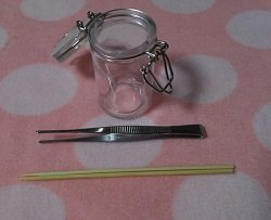 手芸店で販売されていたフィルムシートは、ハーバリウム専用のシルエット(影)タイプで、とても幻想的な世界を作れそうだったので購入してみました。店員さんにお尋ねしたところ、ハーバリウムオイルにつけても変色しないそうです。あると便利なのはピンセット、竹串ですね。