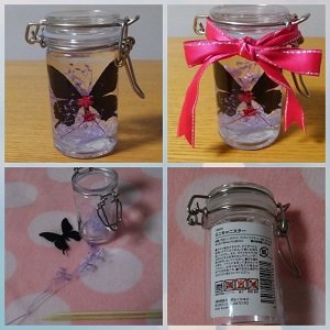 材料はボトル(瓶)花ハーバリウム専用オイルあればリボン